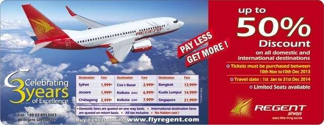 Once again, Regent Airways, one of the private owned airlines in Bangladesh announced a lucrative discount on its five international and two domestic routes. The ...